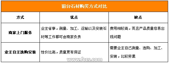 窗臺石材的購買方式有兩種,一種是選擇讓商家上門服務(wù),一種是自己去石材市場挑選加工,然后運回來自己或請人安裝,兩種方式各有利弊。