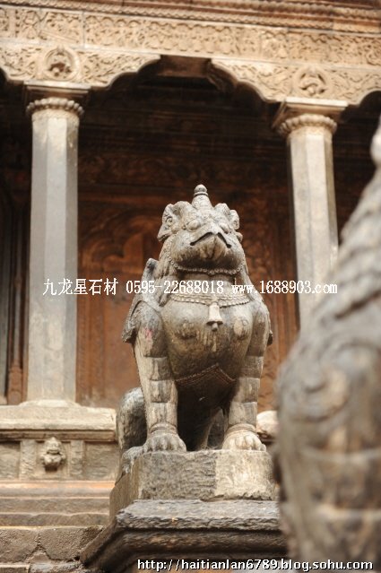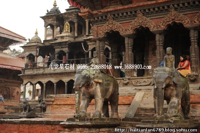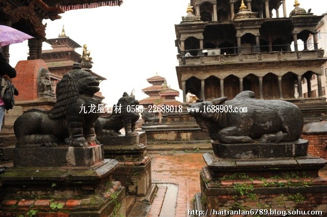 帕特王宮廣場匯集了眾多風(fēng)格古樸的寺廟和石雕。眾石獅們在各自的崗位上日夜守衛(wèi)著馬拉國王的古代宮廷,黑天神廟,加格納拉揚神廟,帕特國王雕像柱和黃金廟。尤其是廟克里希納廟、也稱黑天神廟,處在王宮廣場的核心位置,供黑天神,建于1667年,由于是王室所建,規(guī)模自然比普通神廟大一些,氣勢上勝一籌。所以從外觀上就可以看到,整個神廟坐落在高臺基之上,主殿的圣所正上方,聳立著一座有21個鎦金塔頂?shù)闹窆S狀塔頂,塔亭的欄桿間,栩栩如生的雕刻著印度古典史詩《摩坷婆羅多》和《羅摩衍那》的圖像、神像和鳥獸。除塔頂外完全用石頭建成,遠遠望去,像是一件精美的石雕工藝品。這是尼泊爾建筑藝術(shù)的奇跡,而這樣一座偉大的建筑,竟完全不用圍墻,也沒有手持武器的衛(wèi)兵。那么,誰來護佑她的安全呢?自然是石獅子了。門前一個獅子衛(wèi)隊,那叫一個威武啊,就算是牛鬼蛇神壞人也沒有敢起歹心的。