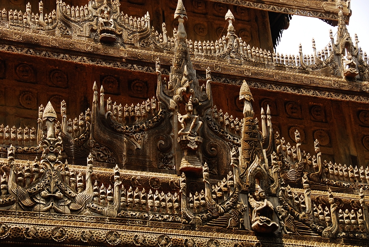 阿都瑪希寺的大門,由白色大理石經(jīng)書圍繞著金光四射的寺廟大門。在修建廟宇的問題上,緬甸人是毫不吝嗇的。為什么人們會(huì)說緬甸是富饒中的貧困,原因也許就在此。緬甸人將一生的很多時(shí)光和財(cái)富都貢獻(xiàn)給了佛。