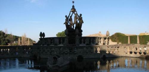 噴泉:蒙塔爾托主教入主別墅時期,他按照當(dāng)年維尼奧拉的整體設(shè)計,繼續(xù)建造花園的中央噴泉--意大利風(fēng)格主義雕塑家詹博洛尼亞(1529-1608)設(shè)計建造的"摩爾噴泉":4個石欄圍繞的水池,石欄上矗立著石雕花瓶,4個水池中央便是一組高聳的年輕運(yùn)動員的輝煌雕塑,他們高高舉起象征著蒙塔爾托主教家族姓氏的"阿爾托山"。從遠(yuǎn)處看去,這些有力的塑像十分宏大,黑黝黝地閃耀,以至于人們會認(rèn)為它們是青銅,可是難以置信的是,它們是最好的、最堅硬的石灰華在陽光與水的作用下生成的一種堅硬如鐵的物質(zhì)。后來意大利新古典主義雕塑大師卡諾瓦來到這里時,大為驚訝,他一邊拿起錘子輕輕敲打著它,一邊發(fā)出如此的感嘆:"它將比大理石更長久"。