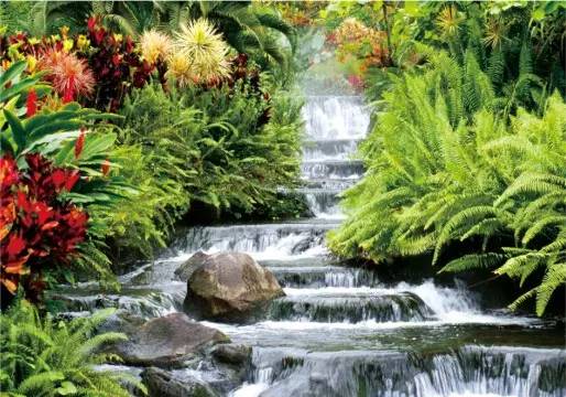 利用高差做出層次豐富的跌水溪流,在兩側(cè)不同種類的植物的掩映中,溪流源頭更顯深邃神秘。