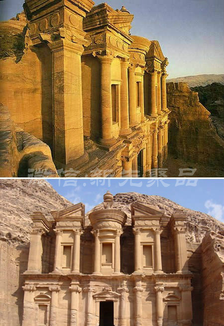 Mada’in Saleh 也被稱為Al-Hijr(巖石場),位于北漢志(今沙特阿拉伯),是猶太人和納巴泰人所居住的一座古老的城市,也被成為海格拉(詛咒之地)。這里被發(fā)現(xiàn)的一些銘文可追溯到公元前兩千年。然而,所有保留下來的建筑元素可以追溯至公元前1世紀(jì)和公元后第二個(gè)世紀(jì)的Thamudi,Lihyan和納巴泰文明時(shí)期。Mada’inSaleh不僅是沙特最壯觀的旅游景點(diǎn),它也是世界最偉大的歷史遺跡之一。在清晨的日光中,石墓呈現(xiàn)給人的是一種非凡的美麗,陽光中投射下的影子和石墓形態(tài)各異,更給Mada’in Saleh真正增添了幾分魅力。其姊妹城市---佩特拉,納巴泰王國前首都,位于約旦邊境北部150公里。