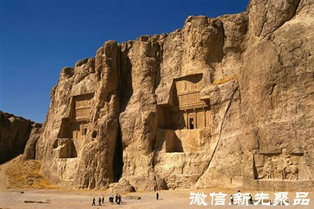 Naqsh-e Rostam被考古學(xué)家認(rèn)為是波斯波利斯的一座墓地,阿契美尼德,帕提亞和薩珊皇族被安葬在此處。其位于伊朗法爾斯省的波斯波利斯西北3,4公里處,這里擁有一些皇室陪葬品,其中包括:埃蘭王朝(公元前2世紀(jì)),阿契美尼德王朝(公元前550-330年)以及薩珊王朝(公園226-651年)。自從前阿契美尼德時(shí)期唯一幸存的紀(jì)念浮雕也差點(diǎn)在巴赫拉姆二世的審判現(xiàn)場被毀滅。Naqsh-e Rostam 是由白色和灰色的石灰石建造而成,并沒有使用任何的砂漿。據(jù)說,波斯人首先使用色彩來裝飾石雕的。Naqsh-e Rostam石雕的特點(diǎn)就是使用了色彩裝飾。這里好多景點(diǎn)的銘文和雕刻都覆蓋著青金石色。有證據(jù)表明,大流士雕像有著青金石藍(lán)的胡子,黑色的頭發(fā)和眉毛,紅色的眼睛和嘴唇,甚至鞋子也是有顏色的,盡管隨著時(shí)間的流逝,那些色彩逐漸褪去。