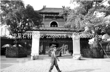 進(jìn)入由三個(gè)拱形小門組成的“山門”,我們就可看到左右兩側(cè)的鐘樓、鼓樓。古代有“晨鐘暮鼓”之說(shuō),太陽(yáng)東升西落,所以鐘樓和鼓樓分居?xùn)|、西兩側(cè)。坐北朝南的第一重大殿是“天王殿”,殿里正面供奉彌勒佛坐像,兩側(cè)為四大天王像。穿過(guò)天王殿是第二重大殿———“大覺寶殿”,迎面看到的是釋迦牟尼佛、藥師佛和阿彌陀佛。雖然第三重大殿“七寶像殿”中原來(lái)供奉的七尊佛像在“文革”間被破壞,但是現(xiàn)在供奉的移自護(hù)國(guó)寺的整樘楠木佛像,也頗具觀賞價(jià)值。