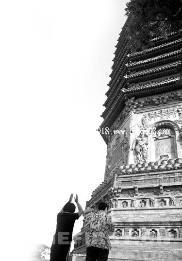 現(xiàn)在的天寧寺正在大修,平時(shí)是不開門的,記者第一次去的時(shí)候就吃了閉門羹。守門的師傅說(shuō),每逢初一和十五才會(huì)開放。