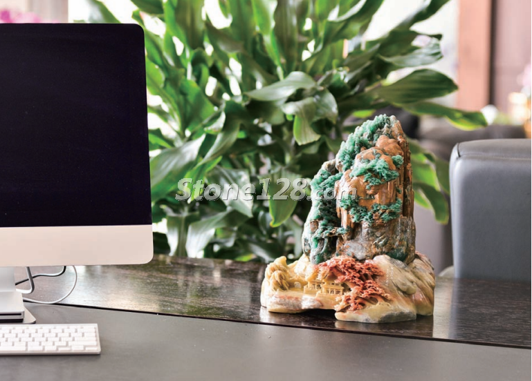 將其放置于會(huì)議桌上,使之與會(huì)議室的整體空間景物相協(xié)調(diào)。墻上的書法、遠(yuǎn)處的蘭花、會(huì)議桌上的文玩擺件,相互之間雖然造型色彩各異,但在主題內(nèi)涵上卻又巧妙關(guān)聯(lián),透露出人文風(fēng)度與氣韻。