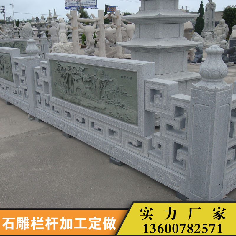 5.石雕欄桿的作用:目前石欄桿已經(jīng)成為傳統(tǒng)建筑最常見的組成部分,可以有效避開踩空危險(xiǎn)的情況。當(dāng)前石欄桿被廣泛適用于市政、水利、公園、交通橋梁 、環(huán)城護(hù)河、別墅裝修、等護(hù)欄工程,從而給人們的生活增添了無限的便利性,起到圍護(hù)圍欄的安全保障作用。在園林建筑場所內(nèi)起到不可或缺的重要地位作用,仿石欄桿起到隔離空間區(qū)域的效果作用。同時(shí)還有著美觀、時(shí)尚、環(huán)保、抗老化、不變形的性能優(yōu)點(diǎn)。