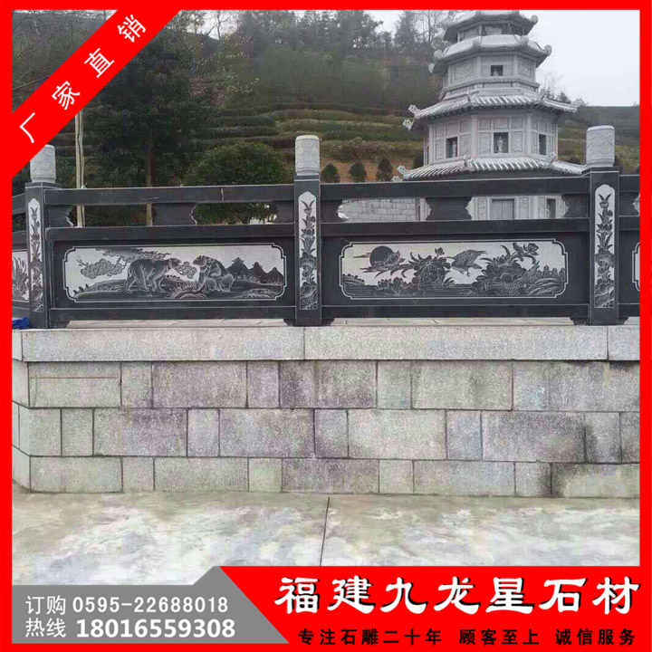 青石石雕欄桿表面色澤均勻,外觀光彩奪目,猶如那湖中的蓮花般出淤泥而不染,在維護(hù)人們安全時(shí)給予人們一種溫馨而美好的意境。青石欄板上的圖案更是各有千秋耀眼奪目,有刻畫著山水情懷,有亭臺(tái)樓閣,有圖文并茂,有人魚鳥獸等。在各個(gè)地方展現(xiàn)著不一樣的風(fēng)采。