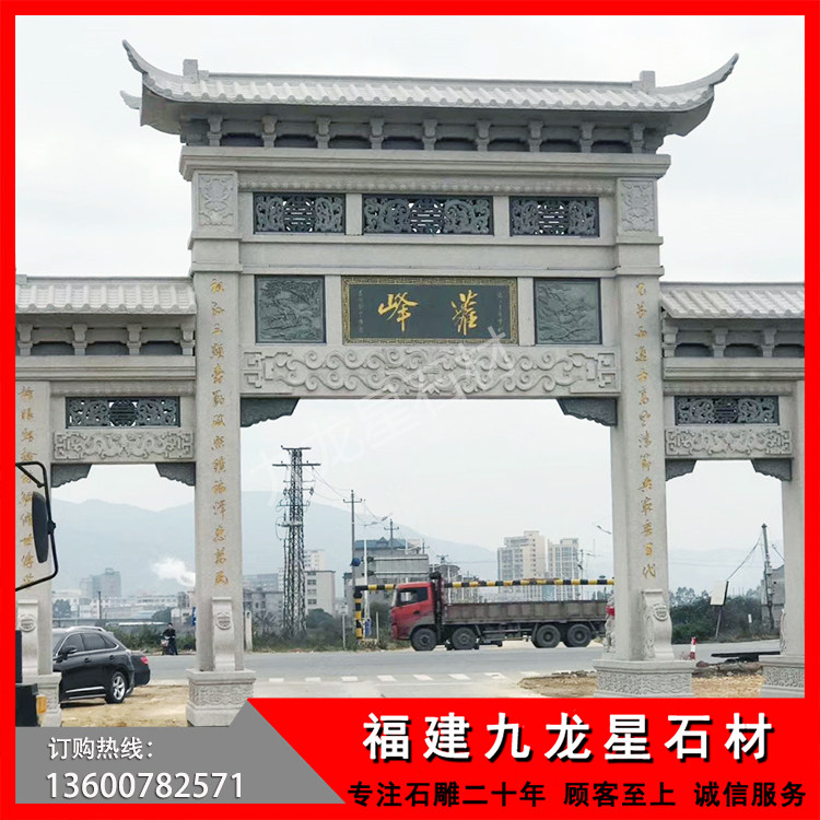 青石石雕牌坊 村口三門石牌坊——福州長樂