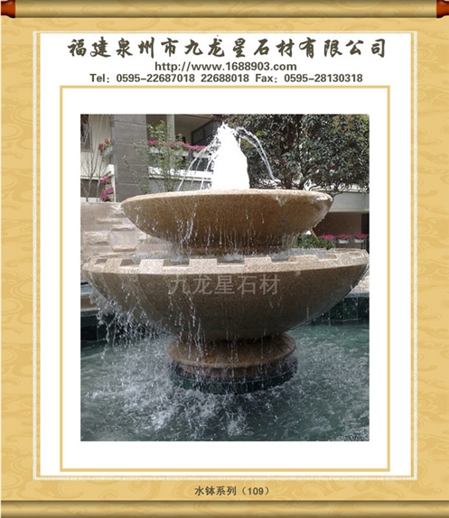 黃金麻石雕噴泉也叫黃金麻石雕水缽,通常被使用在廣場,公園,會(huì)展中心,小區(qū)別墅等場所中,其特點(diǎn)是觀賞價(jià)值高又起到綠化調(diào)節(jié)溫度濕度作用,也被用來進(jìn)行風(fēng)水布局改運(yùn)。黃金麻花崗巖品質(zhì)優(yōu)秀,表面光潔度高,耐腐蝕耐酸堿,硬度密度大,含鐵量高,無放射性,色彩高貴。是石雕工藝品的常用材質(zhì)之一。