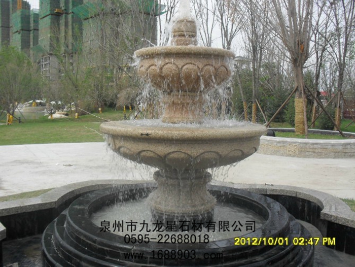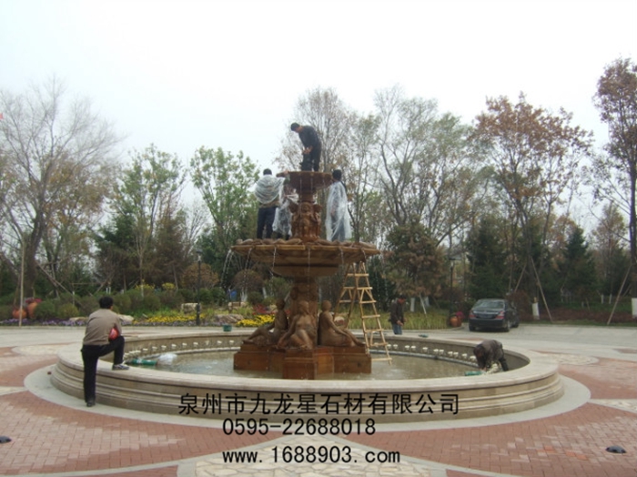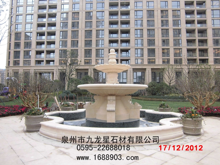 噴泉是園林中重要的組成部分?,F代園林中,除了植物景觀外,噴泉也是重要的景觀,它既是一種水景藝術,體現了動、靜結合,形成明朗活潑的氣氛,給人以美的享受;同時,噴泉還可以增加空氣中的負離子含量,起到凈化空氣、增加空氣濕度、降低環(huán)境溫度等作用,因此深受人們的喜愛。噴泉的種類很多,根據材質分為以下幾種:石雕噴泉、玻璃鋼噴泉、陶瓷噴泉、人造石噴泉、鋼管結構噴泉等。其中石雕噴泉具有結實耐用、藝術價值高、造型美觀等特點應用最為廣泛。
