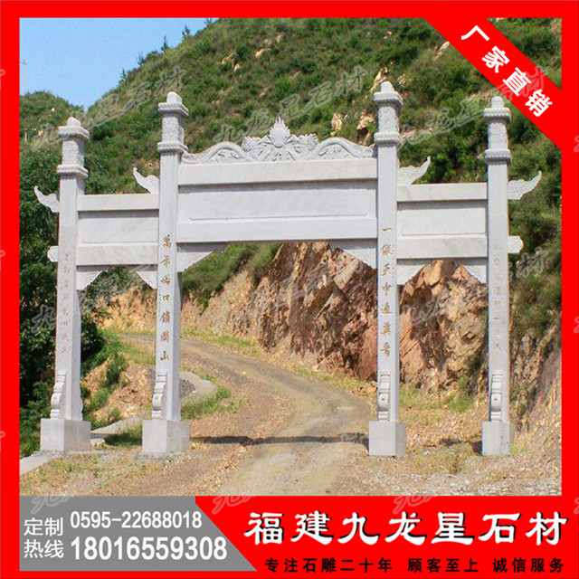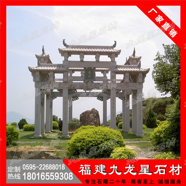 花崗巖石雕牌坊為封建社會(huì)為表彰功勛、科第、德政以及忠孝節(jié)義所立的建筑物。也有一些宮觀寺廟以花崗巖石雕牌坊作為石雕山門的,花崗巖石雕牌坊又名石雕牌樓。花崗巖石雕牌坊也是祠堂的附屬建筑物,昭示家族先人的高尚美德和豐功偉績(jī),兼有祭祖的功能。其中最為的是石雕貞潔牌坊與石雕忠孝牌坊。