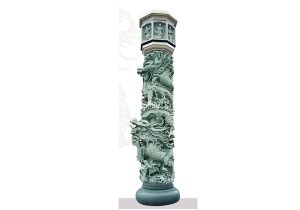 直徑約600MM,高約2400MM。龍柱青石浮雕主題為“騰龍出?!?。