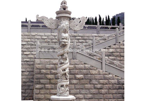 湖南漢白玉龍柱高約6000MM。浮雕題材為“蟠龍出?!保鄻邮匠叽缃钥捎喿?!