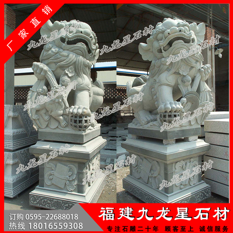 石獅子哪里有賣?找福建九龍星石材!對于不同的時期和不同的地域,石雕獅子廠家對石獅子雕刻也有著不同的特點。雖然整體來說,我國各代歷史上石獅子雕刻的形象都與石獅子其本身的形象不是完全符合。但是在漢唐時期,我們可以發(fā)現(xiàn)石獅子表情更加猙獰,體型更為彪悍,因此這一時期重點突出的大概是獅子兇悍的一面。到了元朝石獅子的四肢和軀干都要顯得更加痩長一些,沒有那么虎背熊腰,可以猜想這一時期主要突出的是獅子孔武有力的一面。之后到了明清事情,石獅子雕刻的表情更加柔和,似乎暗示著它的性格要趨于溫順,同時這一時期針對石獅子的形象也逐漸定型,現(xiàn)在我們看到的石獅子雕刻基本上是明清時期的樣子。