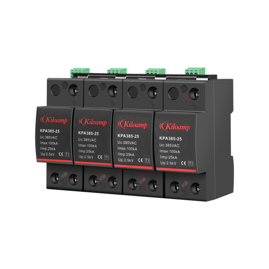 科安Ⅰ級交流電源電涌保護(hù)器(SPD)主要用于配電系統(tǒng)一級防護(hù)(可通過10/350μs波形的電流沖擊),保護(hù)電氣電子設(shè)備免受雷電電磁脈沖感應(yīng)電壓、操作瞬態(tài)和諧振(<100μs)過電壓的影響,廣泛應(yīng)用于通信設(shè)備、電氣、電器、電力設(shè)備、安防監(jiān)控、交通、工控、航空等領(lǐng)域電源保護(hù)??瓢布夹g(shù)KPA385-25/KPA385-50系列產(chǎn)品采用模塊化設(shè)計、溫控斷路技術(shù)、火花間隙技術(shù)等,實現(xiàn)過流保護(hù)、瞬間動作、及時脫扣,可有效避免火災(zāi)及防止浪涌對系統(tǒng)或設(shè)備造成永久性損害或瞬間中斷等危害,提高配電系統(tǒng)的安全性和穩(wěn)定性。